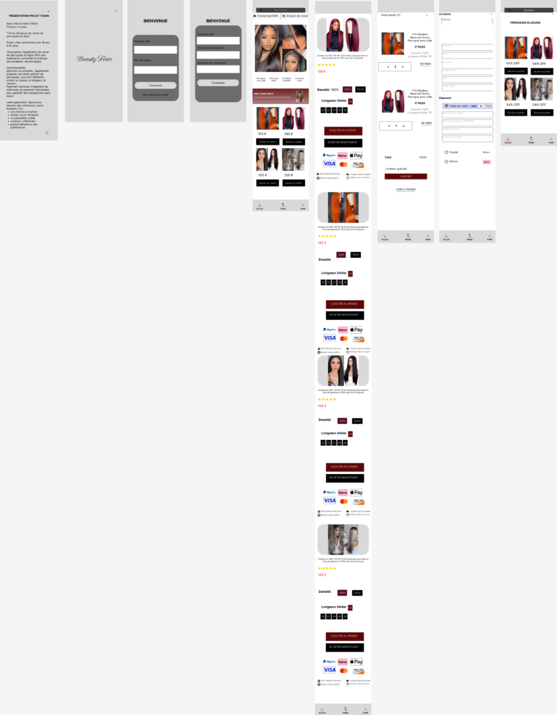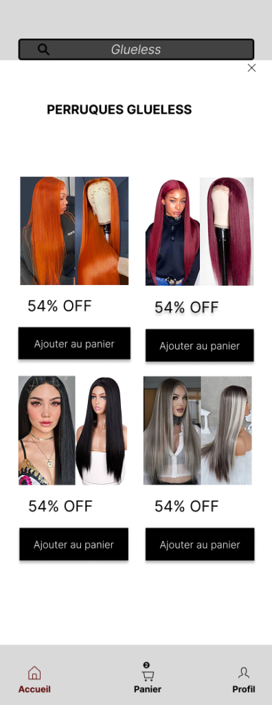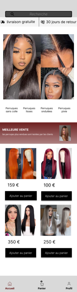Le projet s’inscrit dans le domaine de l’e-commerce, spécialisé dans la vente en ligne de perruques. L’objectif est de proposer une varieté de produits de differentes textures, colorations et longueurs à des prix accessibles