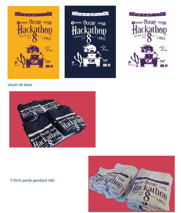 J’ai ensuite réalisé la conception des chèques remis aux lauréats de l’Ocean Hackathon, en veillant à assurer une identité visuelle cohérente