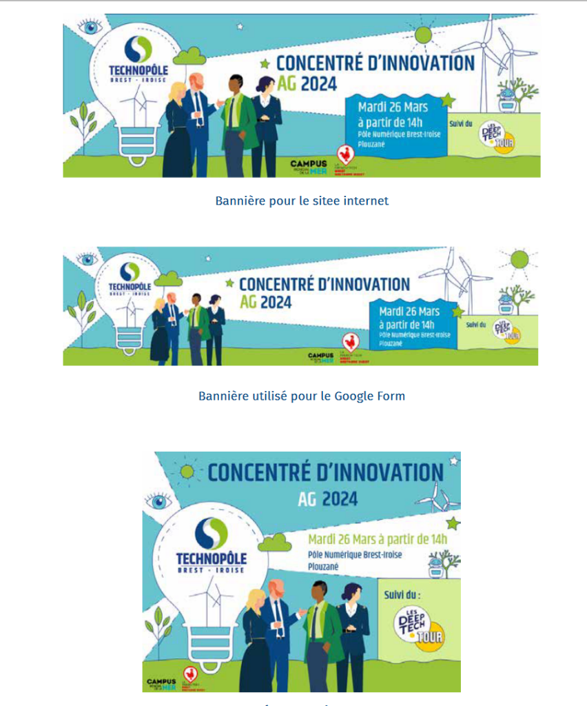 Création du visuel » Concentré d’Innovation : AG 2024″, décliné pour LinkedIn et le site web, dans le respect de l’identité visuelle du Technopôle Brest Iroise.